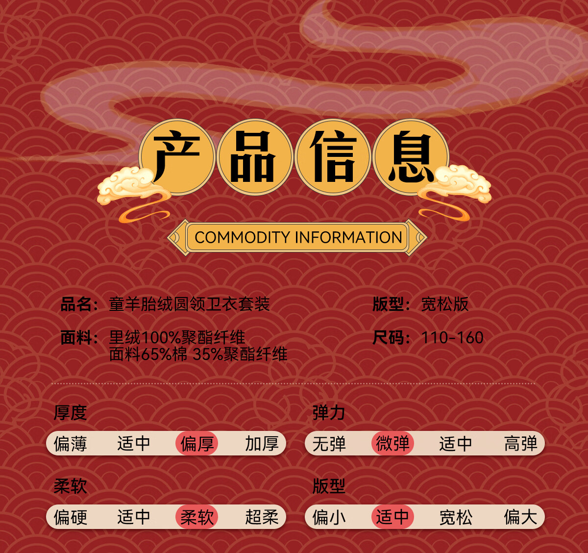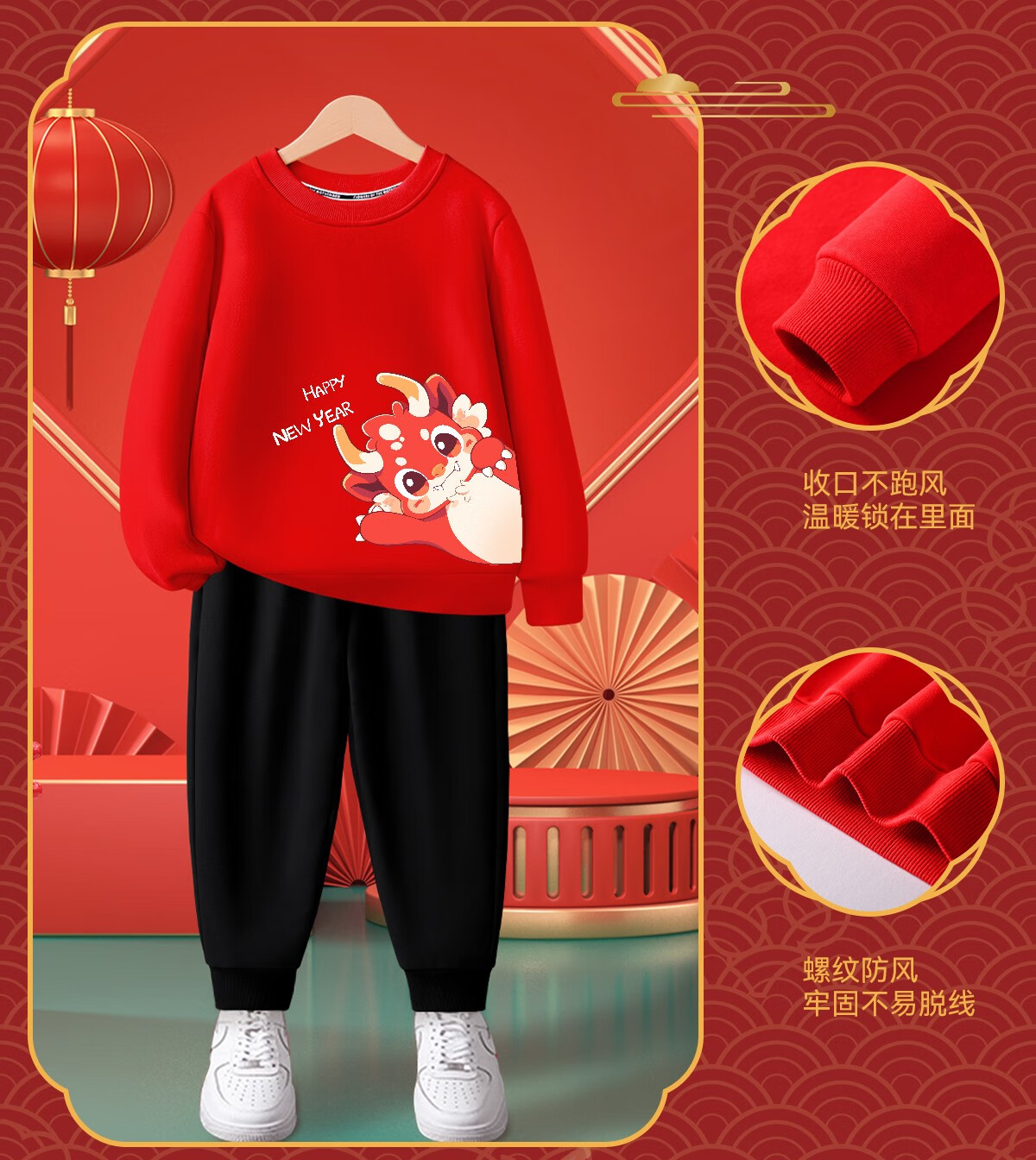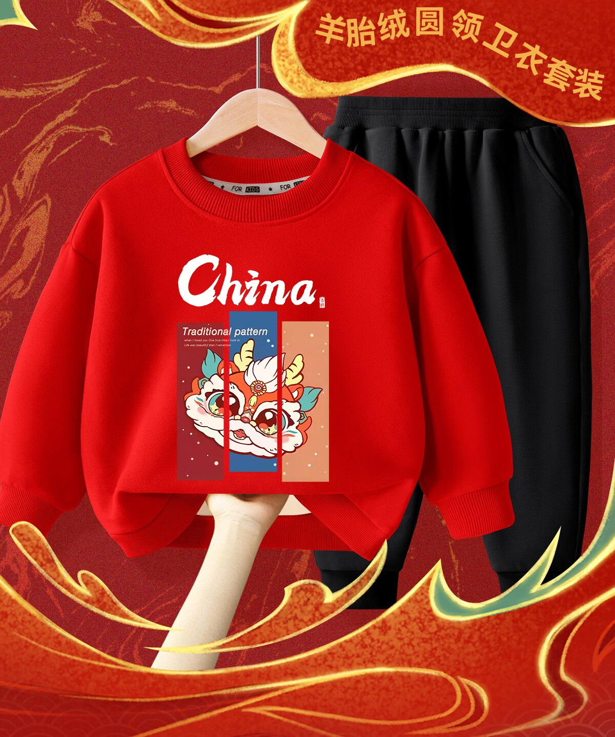 商品名称:LA CHAPELLE KIDS拉夏贝尔儿童加绒套装红色喜庆男童拜年服加厚女童本命年衣服秋冬 三格龙红色+如意龙K黑色